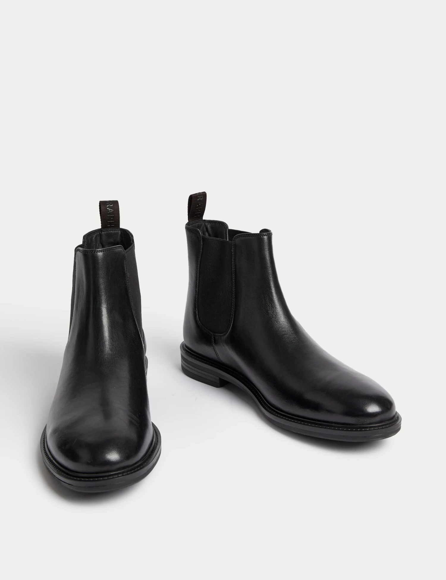 Choose timeless style with these smart Chelsea boots from our Autograph collection. Polished leather and traditional almond-shaped toes give them a refined look. A textured panel at the back adds subtle elevate detail. Branded tabs and comfortable elasticated panels make them quick and easy to pull on and off. The design of the soles helps to guard against slipping. Autograph: premium investment pieces featuring contemporary cuts and refined finishing touches.