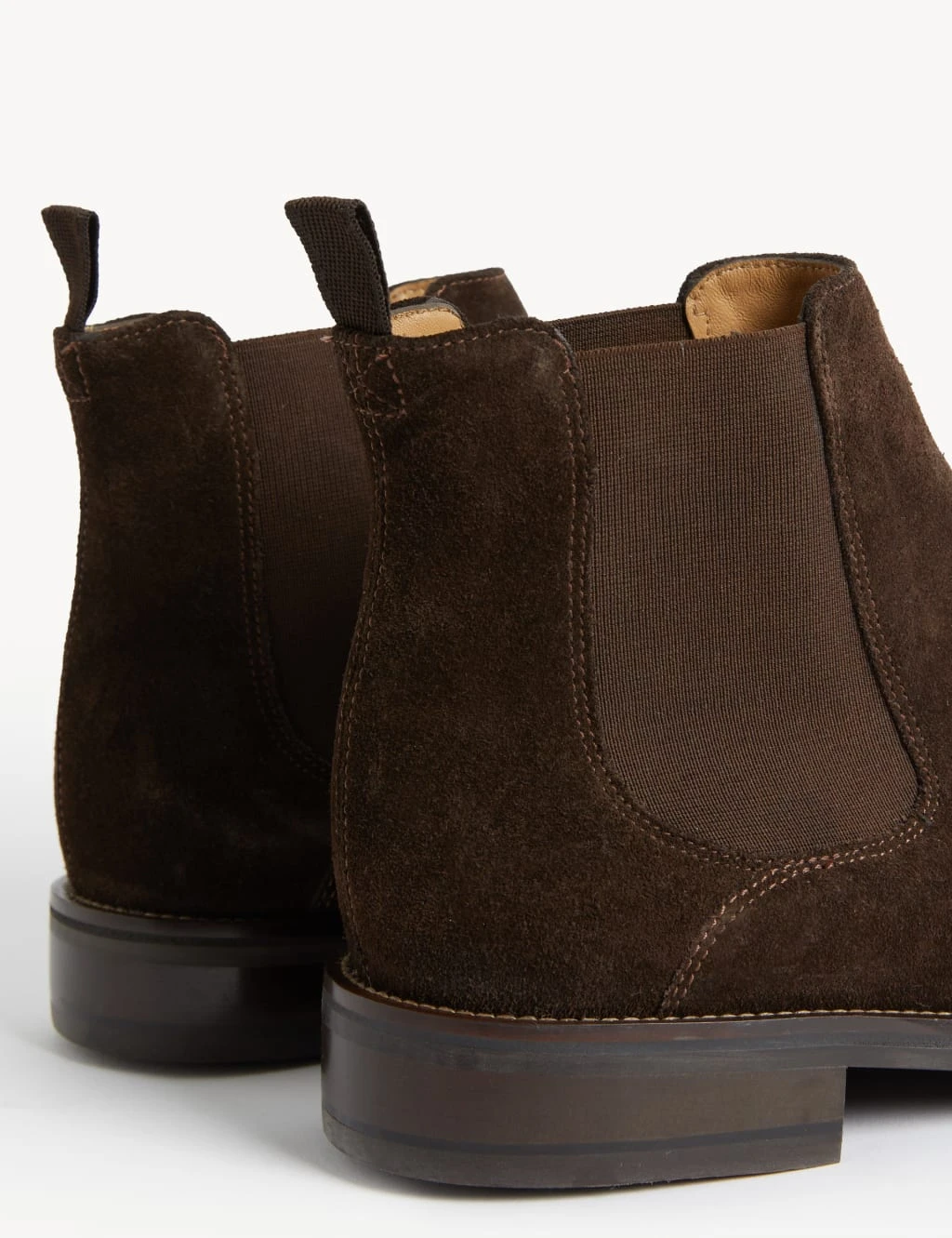 Crafted from premium suede, these Chelsea boots are a timeless essential you can count on. Wide fit, with pull tabs and elasticated sides for easy on and off. Comfortable leather lining. Clever Duraheel 50 technology helps the heel last up to six times longer than standard designs. The suede is treated with a stain-resistant finish to look newer for longer.